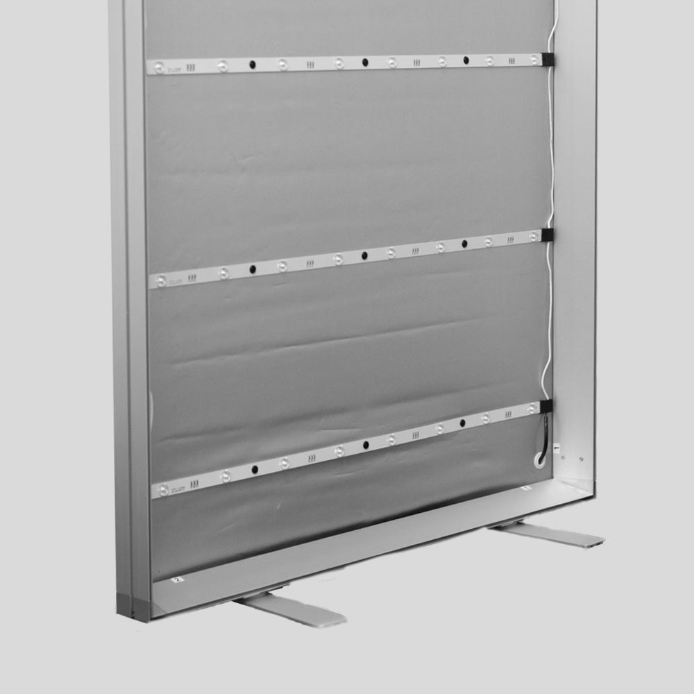 Illuminate your clients’ displays and branding with this sleek single-sided lightbox. Perfect for retail, showrooms, receptions, and foyers, it features a rollable blockout panel with pre-fixed LED strips, is B1/NFPA 701 fire rated and has twist-out feet for stability. Quick to assemble in just 3 minutes by one person, with easy-to-apply graphics that make visuals pop, and the best part? Your clients can switch their graphics up as often as they like.