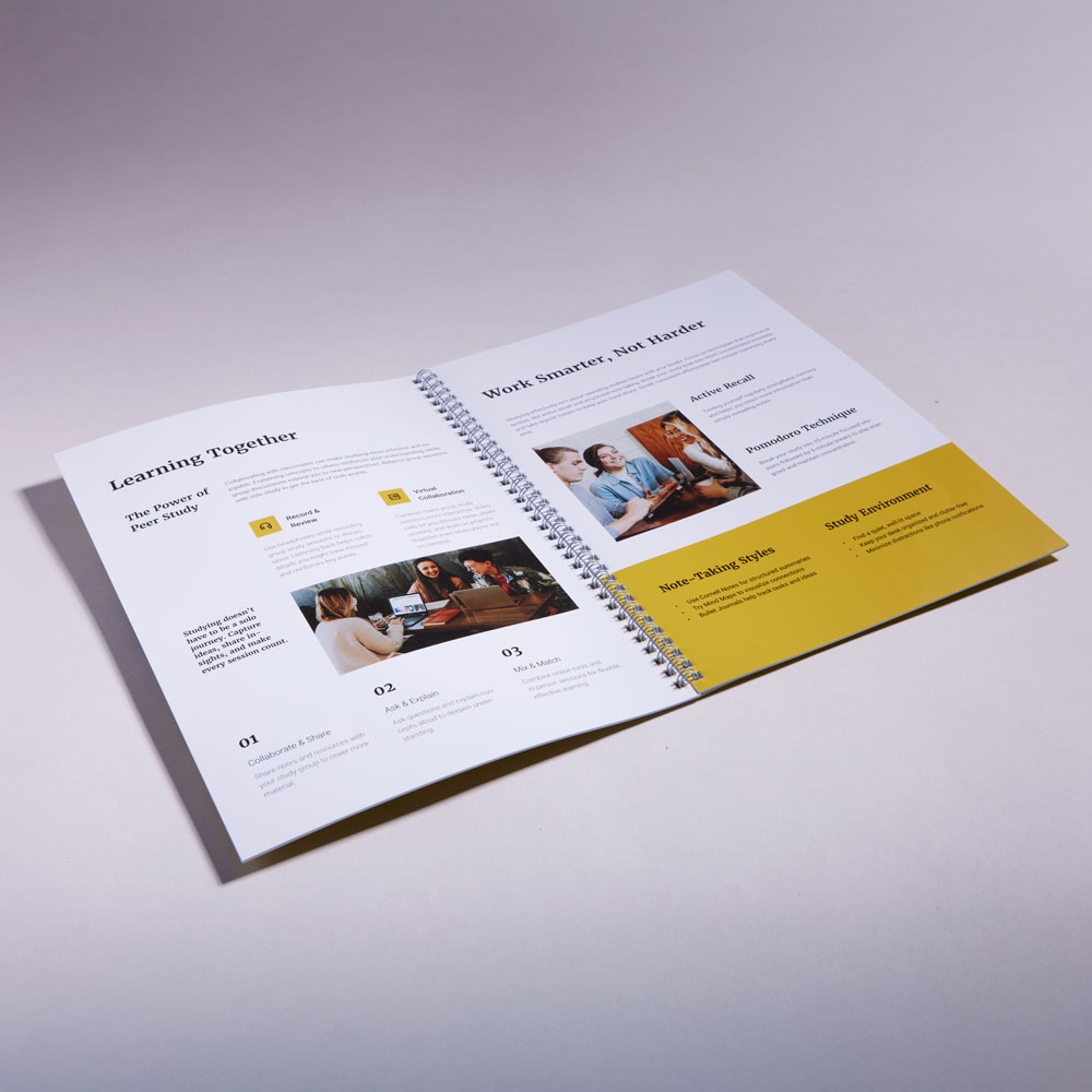 Wiro bound books are perfect for documents that need to lie flat when open – making them ideal for manuals, notebooks, reports and planners. With a sturdy wire binding and a professional finish, they’re practical, durable and easy to use, especially for content that needs to be flipped through frequently.