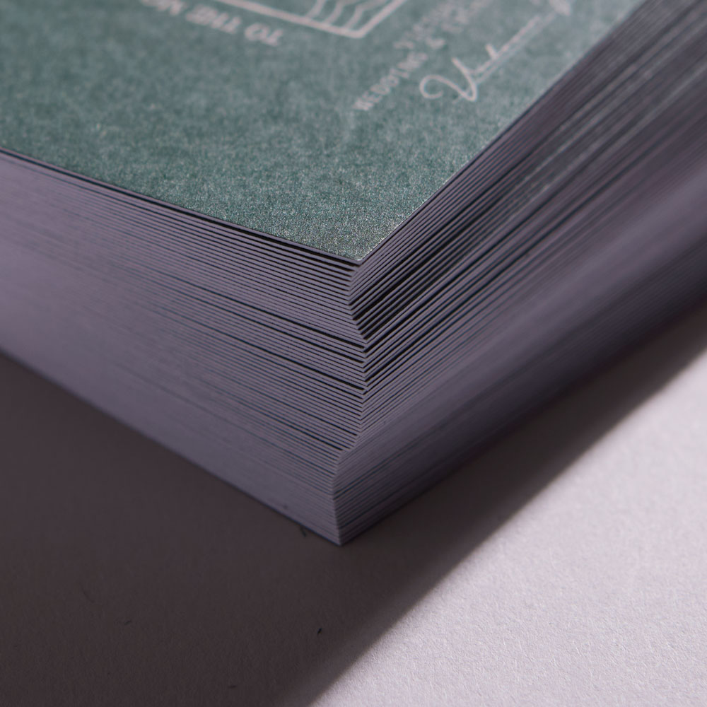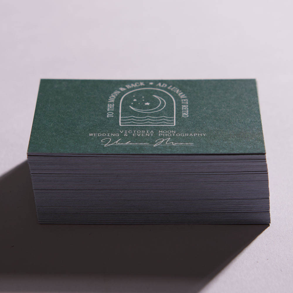 Uncoated business cards offer a natural, tactile finish that’s perfect for writing on, ideal for appointment cards, loyalty stamps, or handwritten notes. With a smooth yet absorbent surface, they give a refined, understated look that’s especially popular with creative industries and professional services.