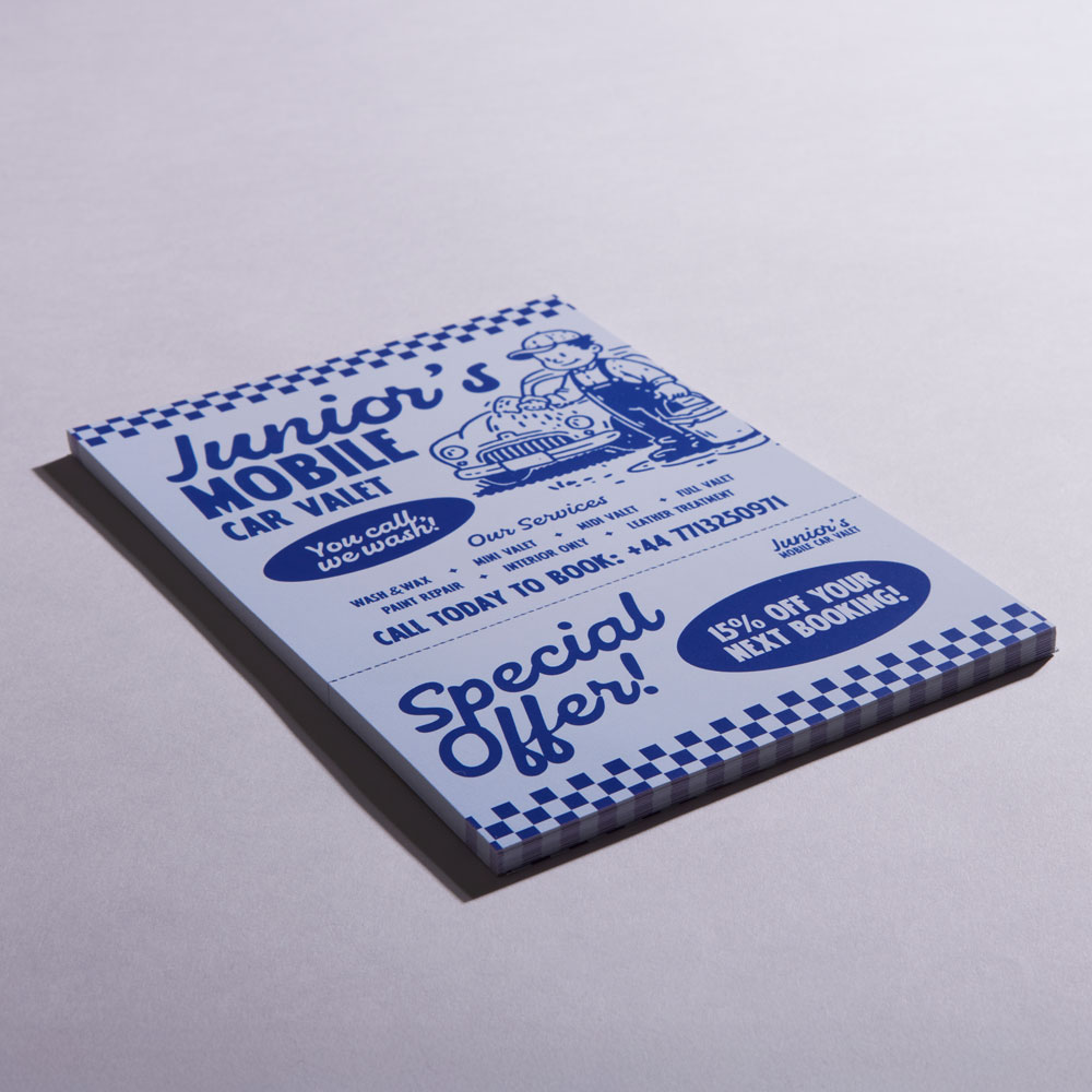 Perforated flyers add a clever twist to traditional handouts by including detachable sections, perfect for coupons, tear-off contact details, or entry forms. They’re an engaging way for your clients to boost response rates and make sure their message sticks around a little longer.