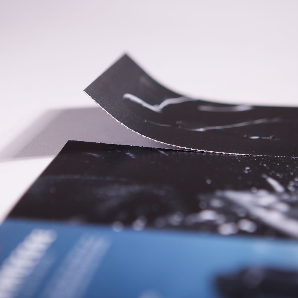 - Matt, gloss and velvet soft touch lamination can be added as well as foil or Spot UV. Embellishment can only be added to laminated print. Lamination can be added to stock thicker than 250gsm and cannot be added to uncoated stocks.