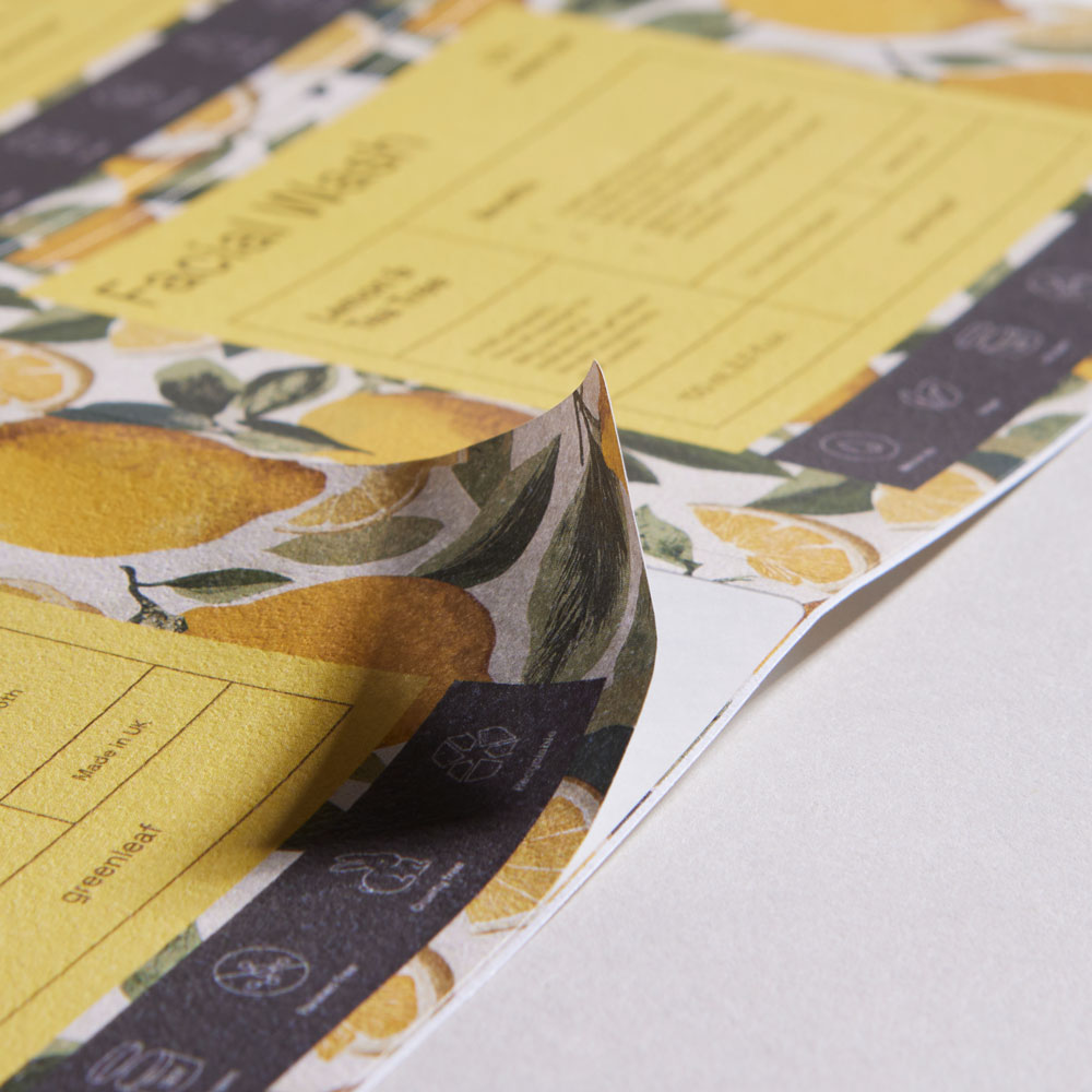 55gsm Gloss White Polyprop: Glossy, durable, and splash-proof, made from polypropylene with a strong, skin-safe adhesive. Perfect for food, drink, beauty, and cleaning products. Ideal for fridges, bathrooms, and any environment with a little moisture in the mix.